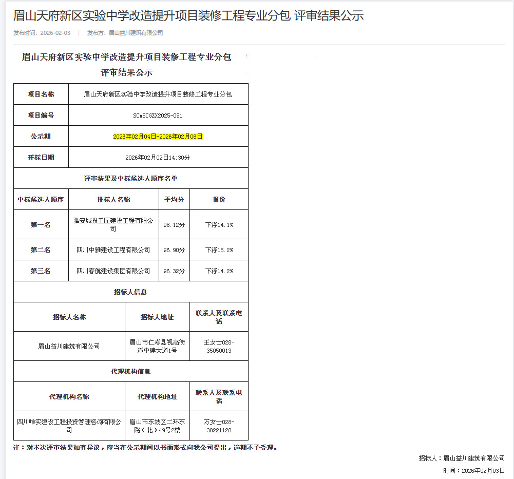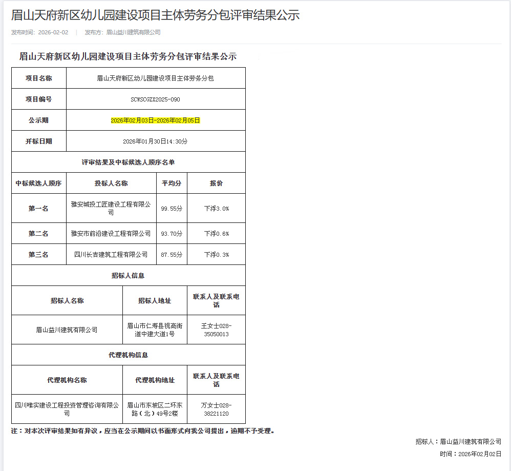 近日,城投工匠公司成功中標(biāo)“眉山天府新區(qū)幼兒園建設(shè)項(xiàng)目主體勞務(wù)分包工程”和“眉山天府新區(qū)實(shí)驗(yàn)中學(xué)改造提升項(xiàng)目裝修工程專業(yè)分包工程”,中標(biāo)金額2294萬元。此次中標(biāo)不僅是公司新年實(shí)現(xiàn)的首個(gè)重要業(yè)務(wù)突破,也是公司首次承接市外項(xiàng)目,標(biāo)志著跨區(qū)域經(jīng)營實(shí)現(xiàn)“零的突破”,為公司發(fā)展迎來“開門紅”。