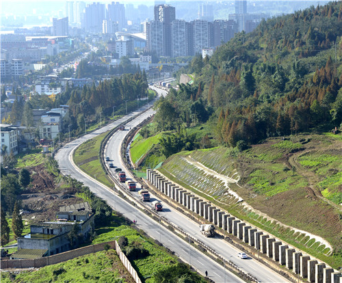 國(guó)道318線雅安至二郎山——雅安城區(qū)過(guò)境段(北外環(huán)線)項(xiàng)目是“4·20”蘆山強(qiáng)烈地震災(zāi)后重建民生項(xiàng)目。該工程起于姚橋新區(qū)雅洪公路交叉口,東連省道305線,沿光華山西側(cè)、金鳳山南側(cè)布置,穿青鼻山隧道,順碉堡山南側(cè)修建,止于康藏路西端,順接國(guó)道108線和318線,道路全長(zhǎng)11.8公里,總投資11.96億元。道路設(shè)計(jì)為雙向4車道,設(shè)計(jì)時(shí)速60Km/h,,道路寬度從17米至49米不等。