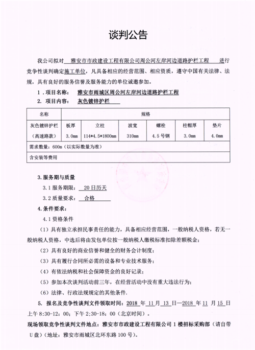 周公河左岸河邊道路護欄工程競爭性談判公告(市政公司)