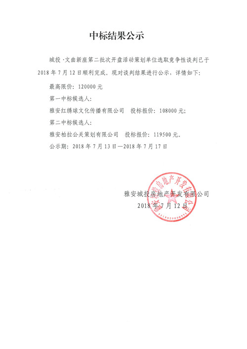 城投·文曲新座第二批次開盤活動(dòng)競(jìng)爭(zhēng)性談判中標(biāo)結(jié)果公示
