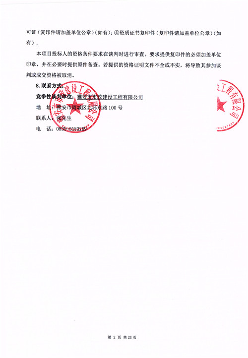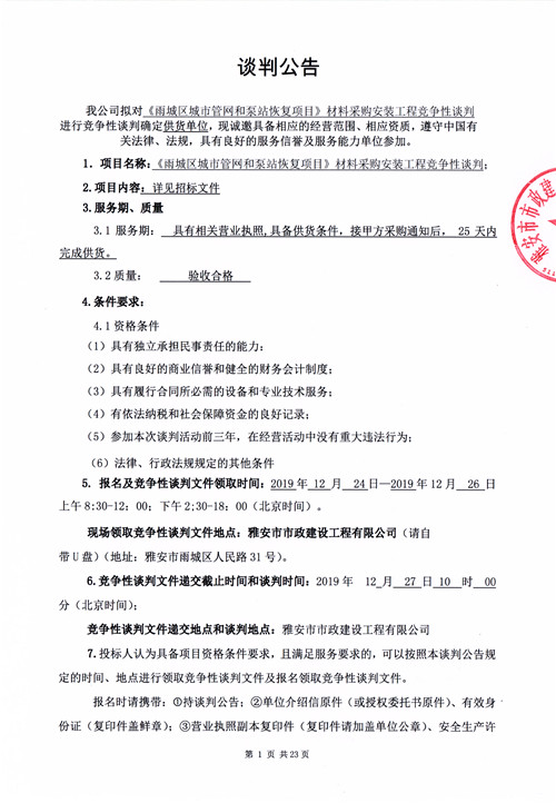 《雨城區(qū)城市管網(wǎng)和泵站恢復(fù)項目》材料采購安裝工程競爭性談判公告