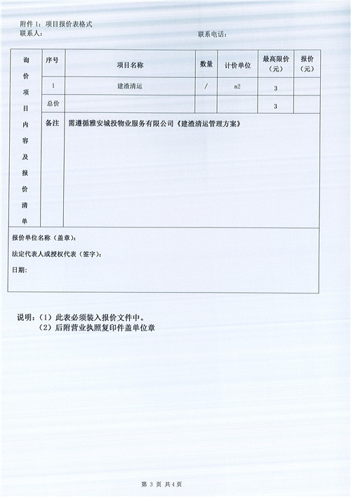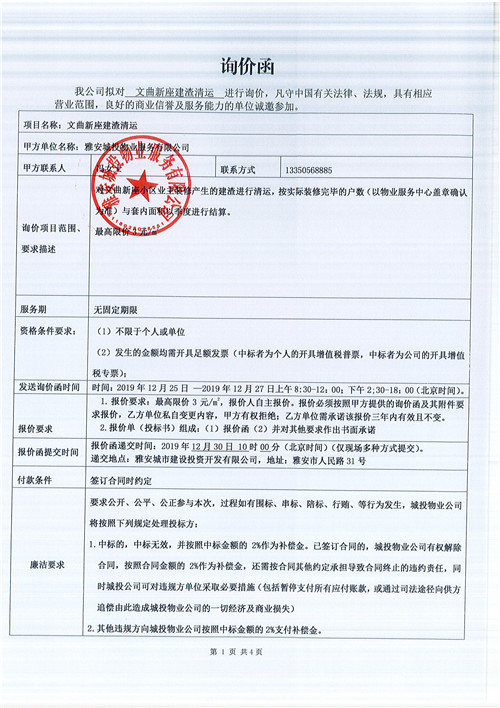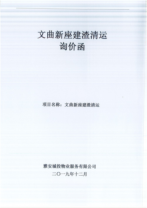 文曲新座建渣清運(yùn)詢價(jià)函