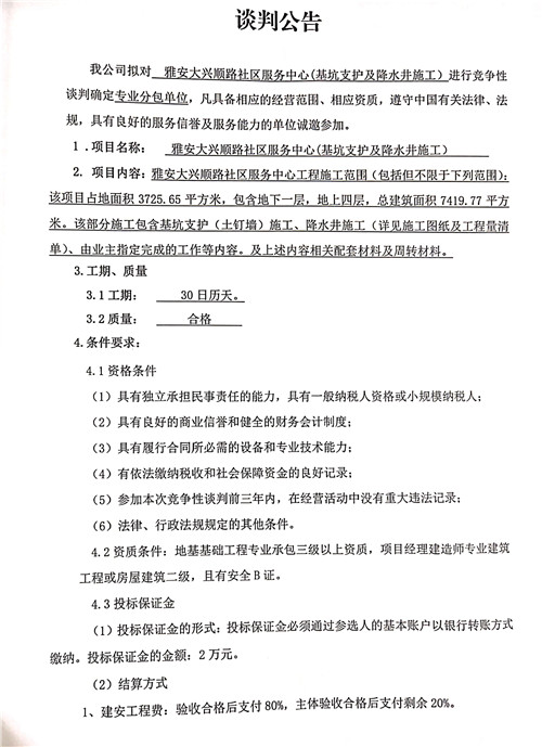 大興順路社區(qū)服務(wù)中心基坑支護及降水工程——競爭性談判