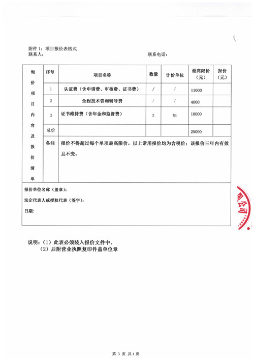 質(zhì)量管理體系ISO9001認證詢價函