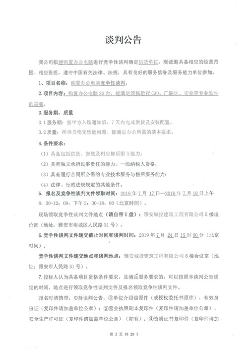 城投建工購置辦公電腦確認(rèn)供貨單位的競爭性談判公告