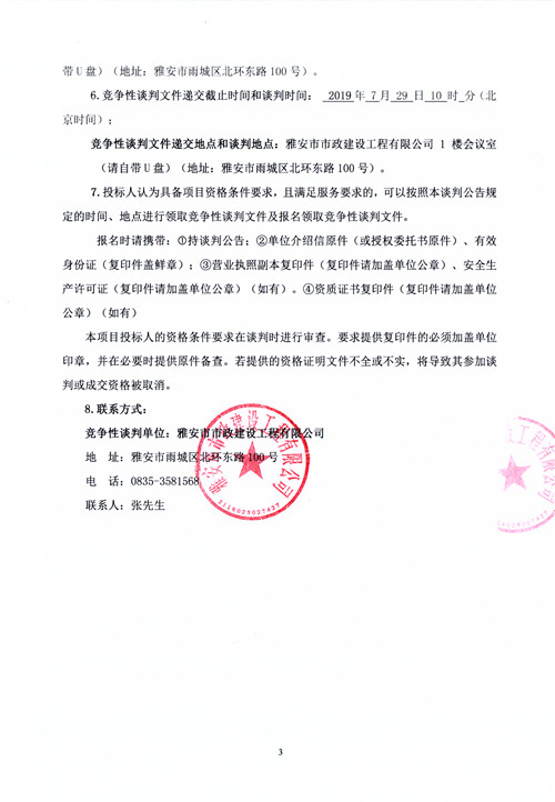 市政公司2019年7月-12月沙石采購供應(yīng)商競爭性談判公告