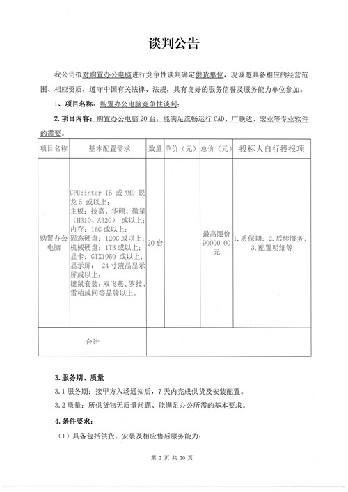 城投建工購置辦公電腦確認(rèn)供貨單位的競爭性談判公告