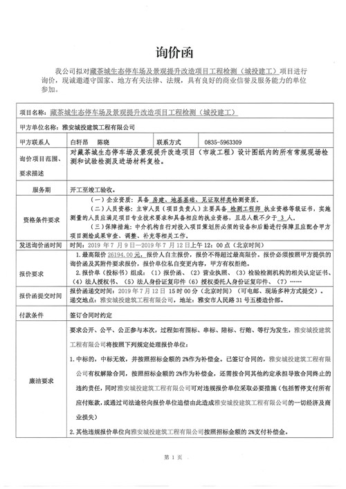藏茶城生態(tài)停車場(chǎng)及景觀提升改造項(xiàng)目工程檢測(cè)