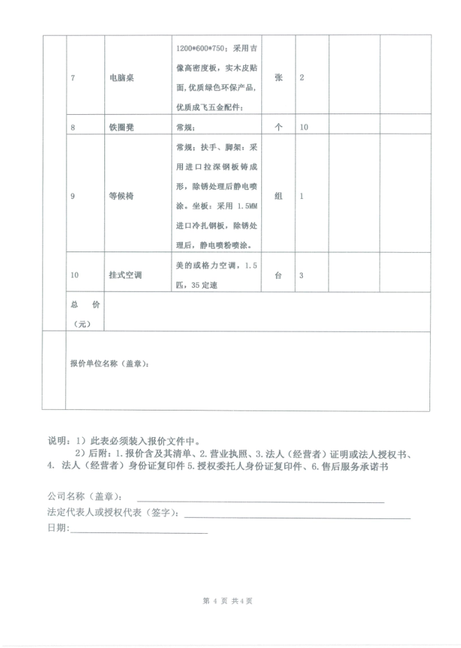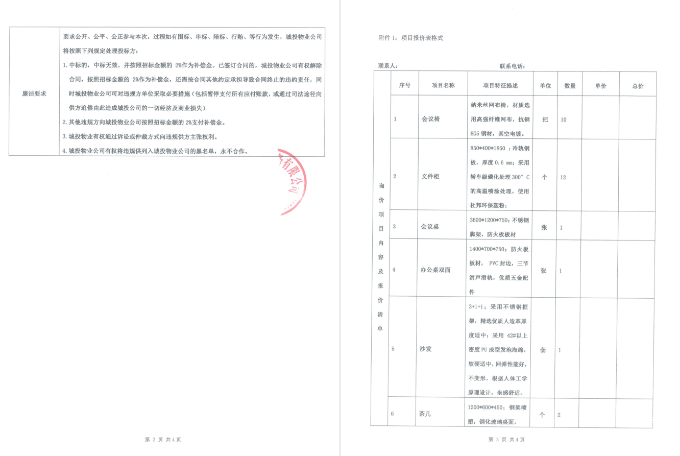 城投·文曲新座物業(yè)管理用房辦公家具采購詢價(jià)函