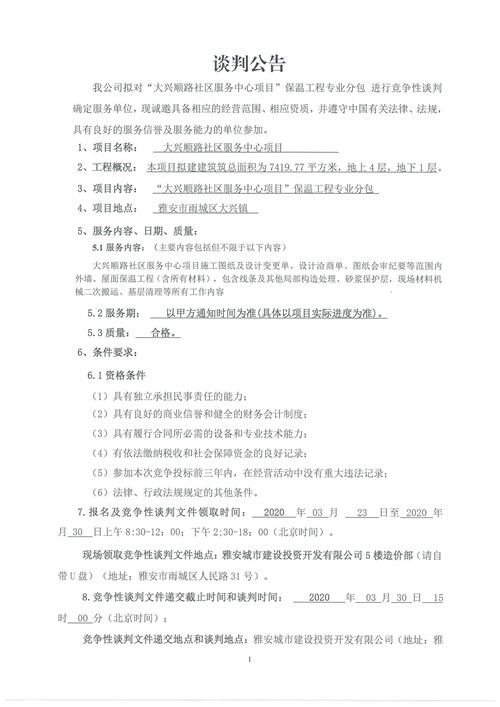 城投建工“大興順路社區(qū)服務(wù)中心項目”保溫工程專業(yè)分包競爭性談判公告