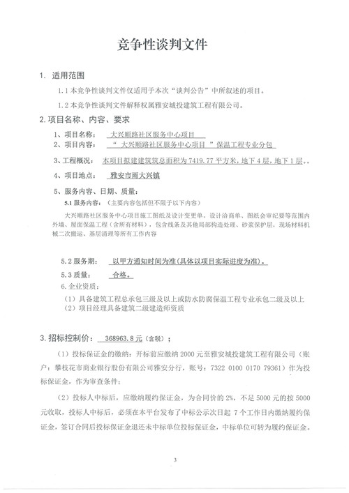 大興順路社區(qū)服務(wù)中心項目保溫工程專業(yè)分包競爭性談判公告