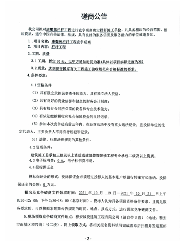 康馨苑欄桿工程競(jìng)爭(zhēng)磋商公告