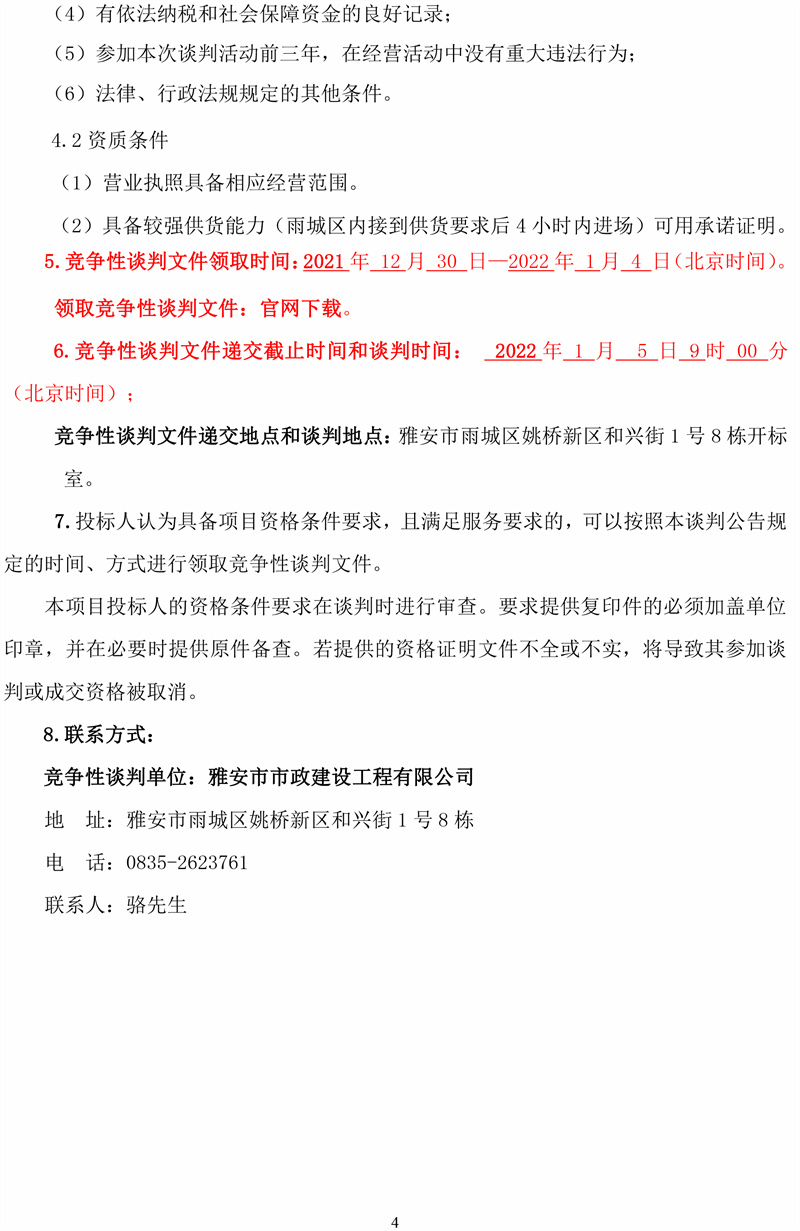 雅安市市政建設(shè)工程有限公司2022年度商品混凝土采購項目競爭性談判公告