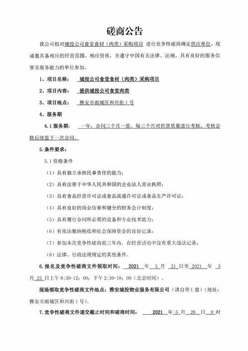 城投物業(yè)關(guān)于城投公司食堂食材(肉類)采購項目競爭性磋商公告