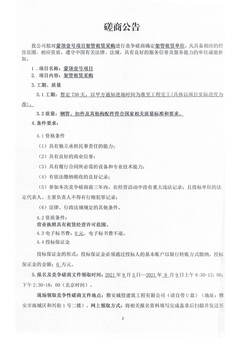 蒙頂壹號(hào)項(xiàng)目架管租賃采購競爭磋商公告