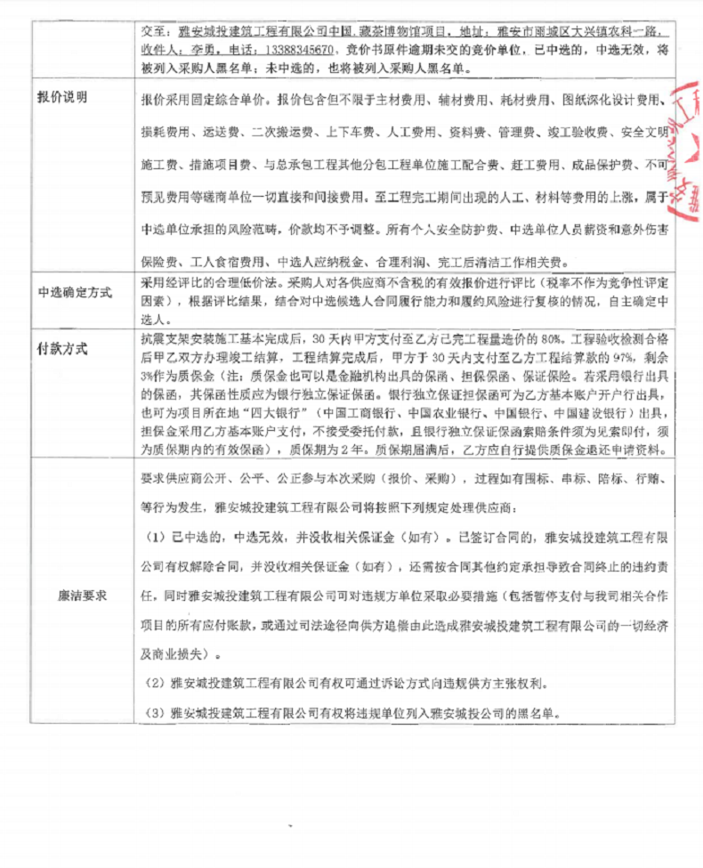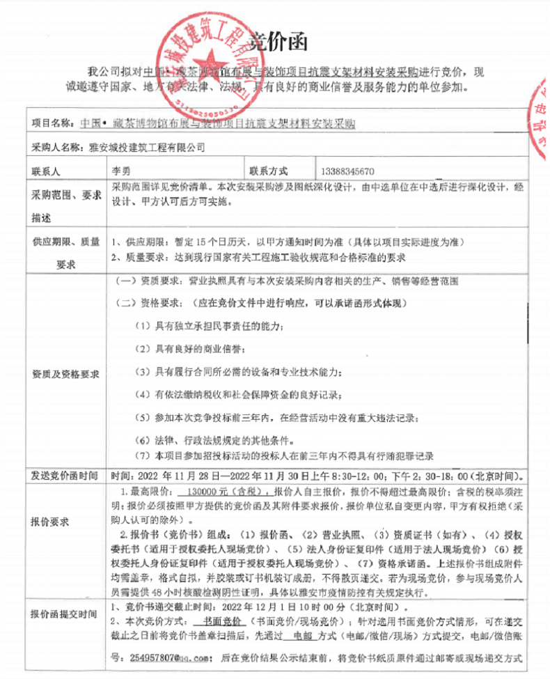 中國(guó)藏茶博物館布展與裝飾項(xiàng)目抗震支架材料安裝競(jìng)價(jià)公告
