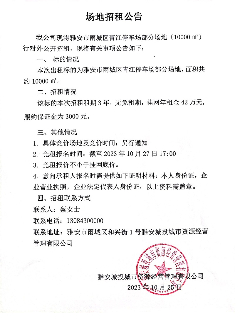 雅安市雨城區(qū)青江停車場部分場地招租公告