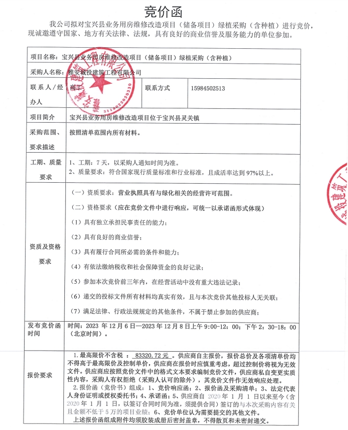 寶興縣業(yè)務(wù)用房維修改造項(xiàng)目(儲備項(xiàng)目)綠植采購(含種植)競價公告