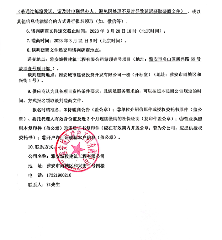 蒙頂壹號項目亮化工程建設(shè)采購磋商公告