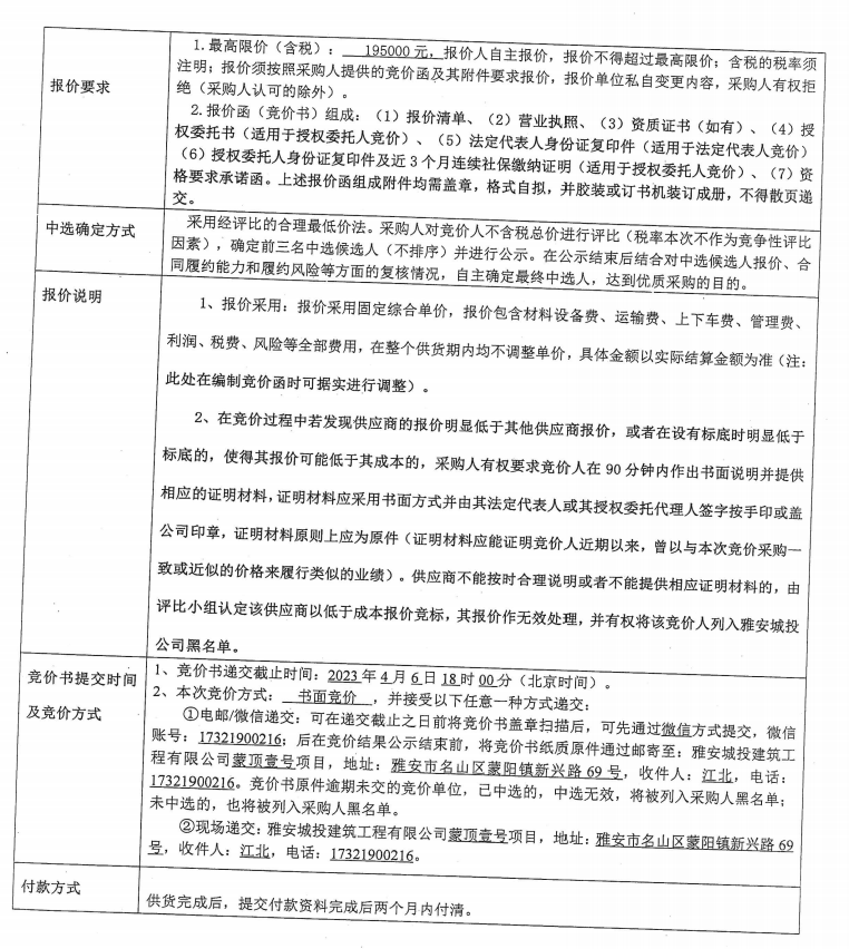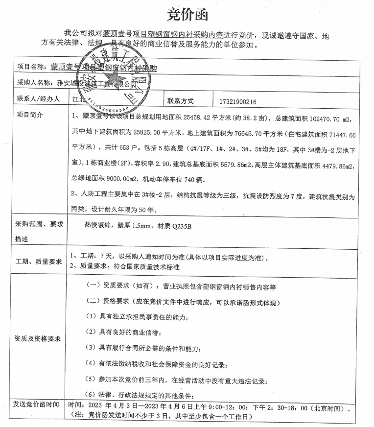 蒙頂壹號(hào)項(xiàng)目塑鋼窗鋼內(nèi)襯采購內(nèi)容競(jìng)價(jià)公告