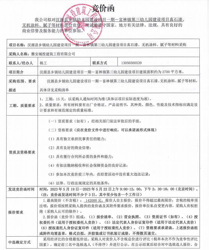 漢源縣鄉(xiāng)鎮(zhèn)幼兒園建設(shè)項(xiàng)目一期一富林鎮(zhèn)第三幼兒園建設(shè)項(xiàng)目真石漆、無機(jī)涂料、膩?zhàn)拥炔牧喜少徃們r(jià)公告