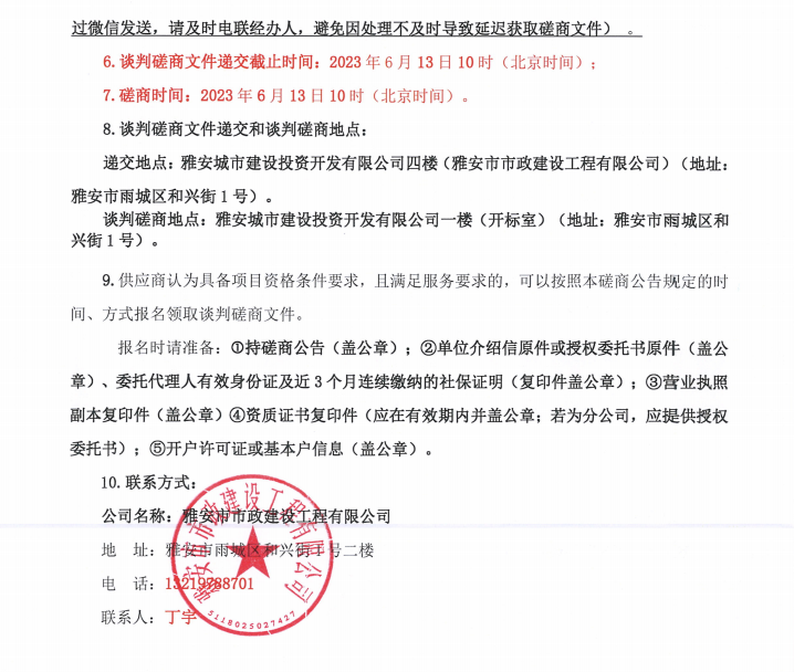 雅安文教新城體育產(chǎn)業(yè)制造園基礎(chǔ)設(shè)施及配套工程建設(shè)項(xiàng)目一標(biāo)段入園道路工程項(xiàng)目給水材料采購(gòu)談判磋商公告