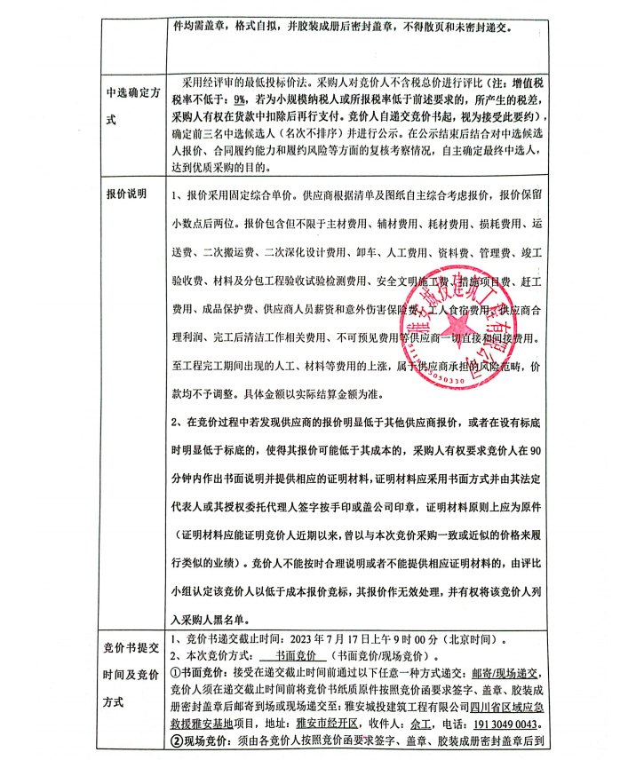 四川省區(qū)域應(yīng)急救援雅安基地項(xiàng)目抗震支架采購安裝工程競(jìng)價(jià)公告
