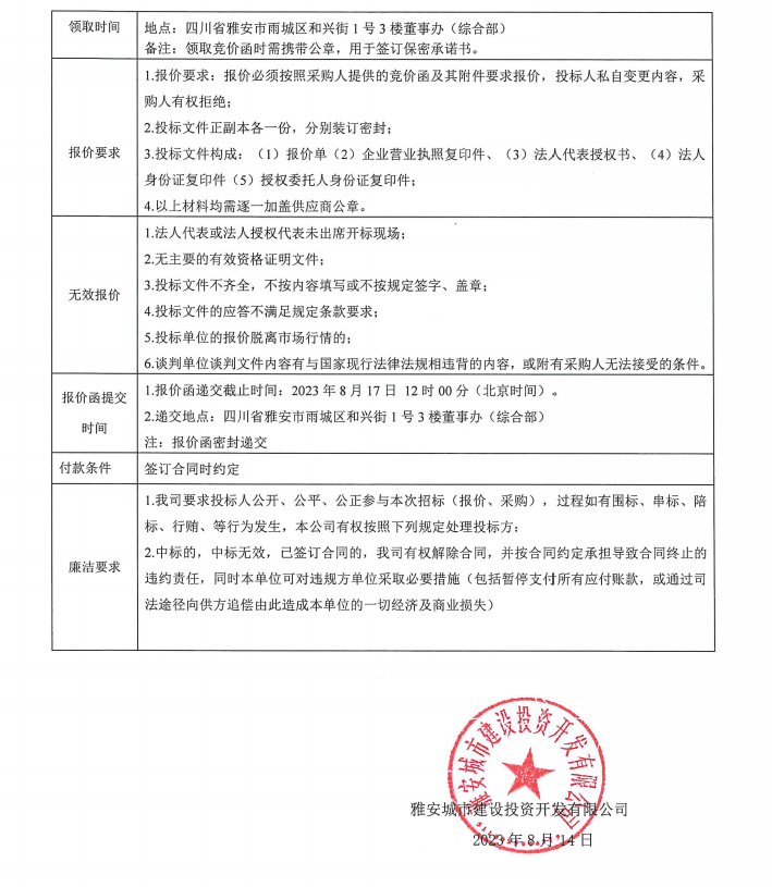 雅安城市建設(shè)投資開發(fā)有限公司辦公耗材、電子設(shè)備供應(yīng)(維修服務(wù))項目采購競價公告