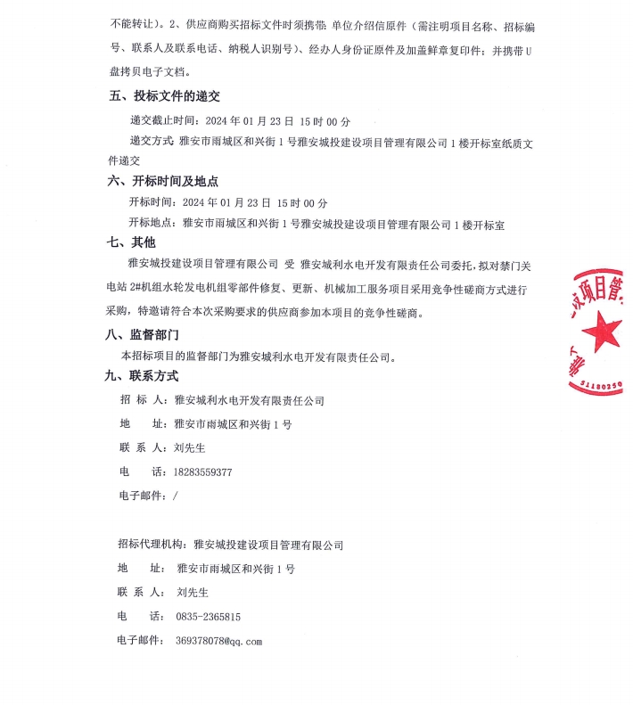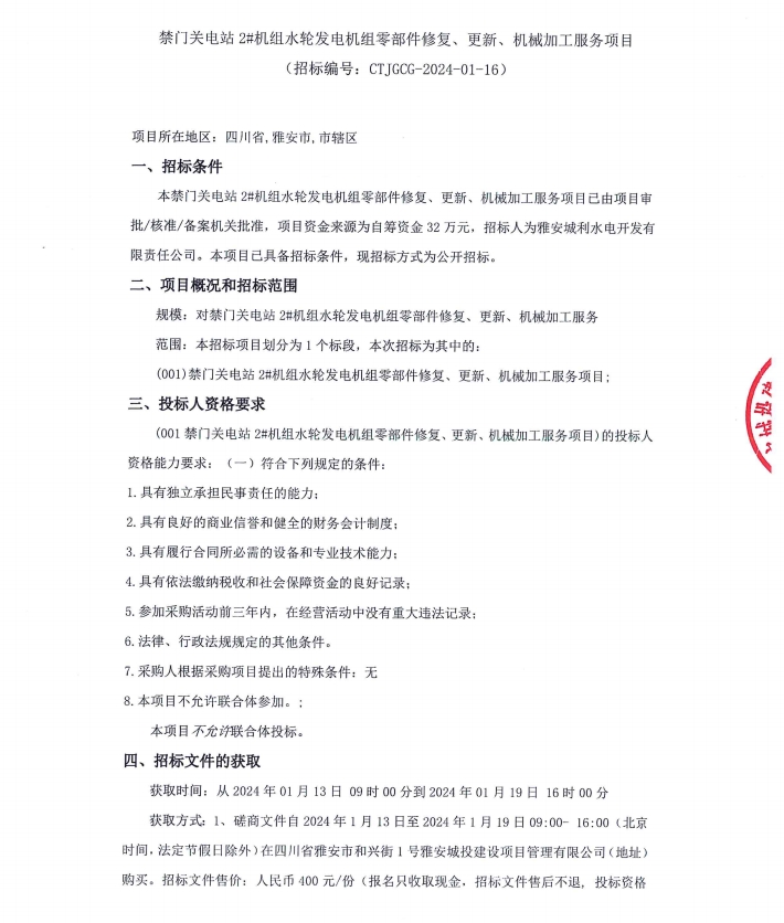 禁門關(guān)電站2#機(jī)組水輪發(fā)電機(jī)組零部件修復(fù)、更新、機(jī)械加工服務(wù)項目公告