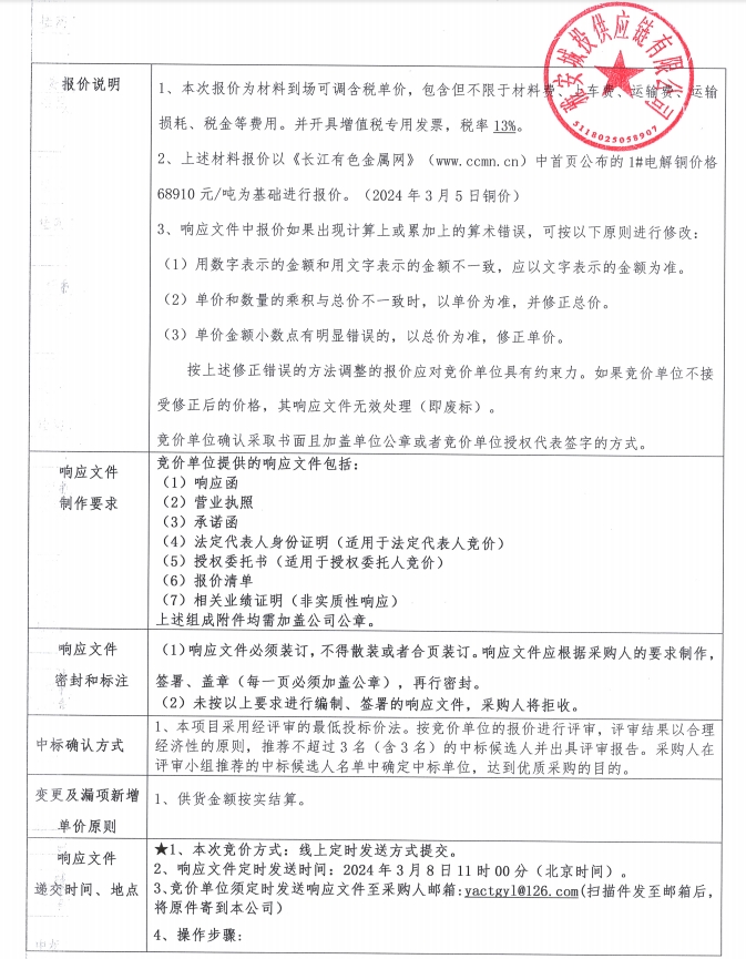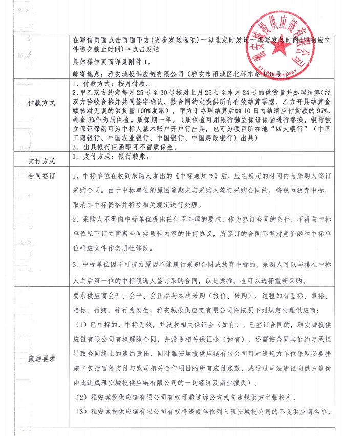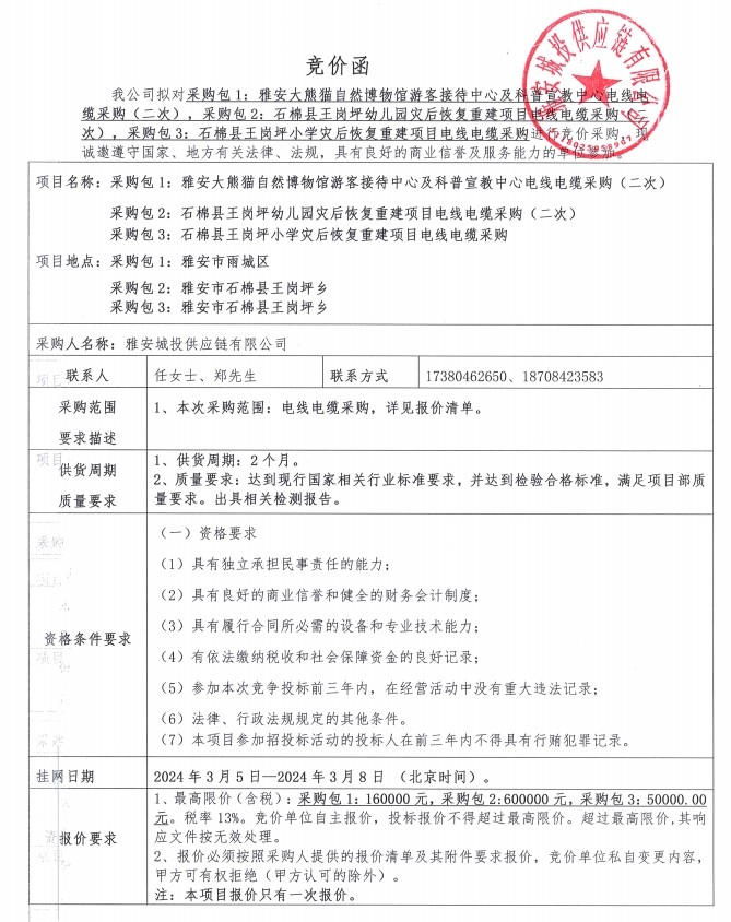 雅安城投供應(yīng)鏈有限公司電線電纜采購競價(jià)公告