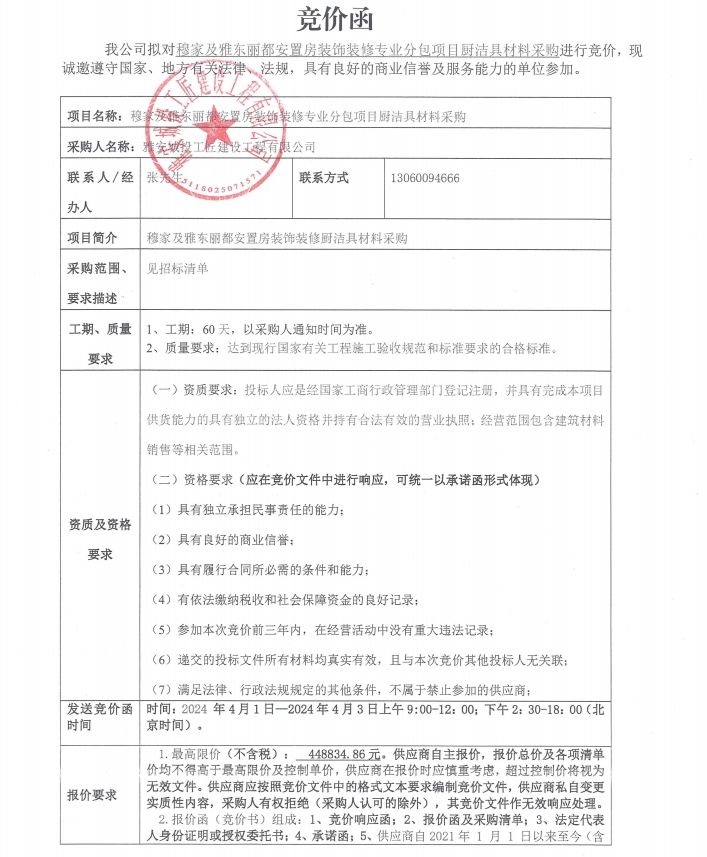 穆家及雅東麗都安置房裝飾裝修專業(yè)分包項(xiàng)目廚潔具材料采購(gòu)競(jìng)價(jià)公告