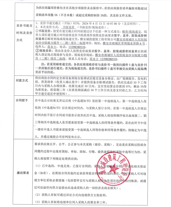 雅安市雨城區(qū)人民醫(yī)院金沙分院能力提升(二期)項(xiàng)目二標(biāo)段供電設(shè)備采購競價(jià)公告