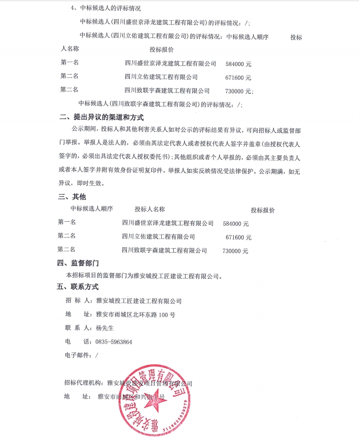 雅安城投工匠建設(shè)工程有限公司道路改造儲(chǔ)備項(xiàng)目水穩(wěn)攤鋪機(jī)械租賃服務(wù)采購(gòu)項(xiàng)目評(píng)標(biāo)結(jié)果公示