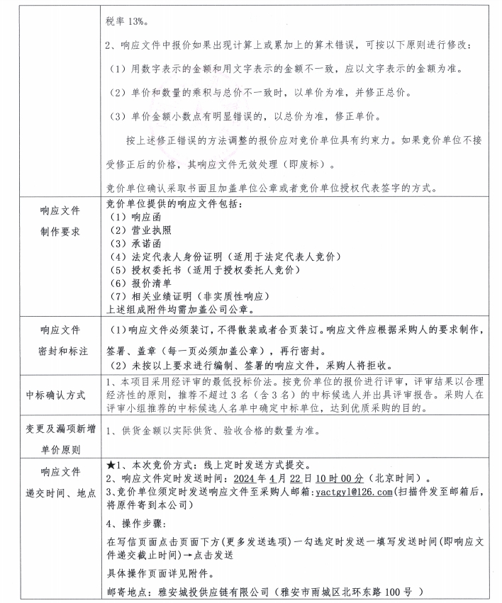 響應文件格式-雅安城投供應鏈有限公司井蓋采購