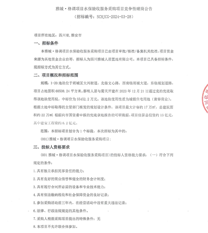 雅城·格調(diào)項目水保驗收服務采購項目競爭性磋商公告