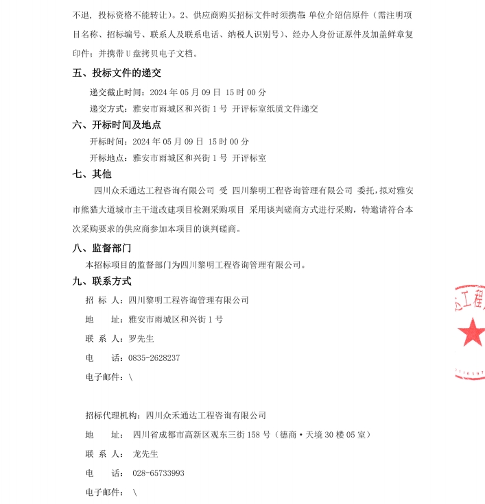 雅安市熊貓大道城市主干道改造項(xiàng)目檢測采購項(xiàng)目公告
