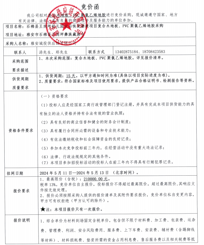 附件1:競價函--石棉縣王崗坪幼兒園災(zāi)后恢復(fù)重建項目復(fù)合木地板、PVC聚氯乙烯地膠采購