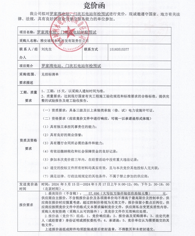 羅家灣電站、門坎石電站年檢預試競價公告