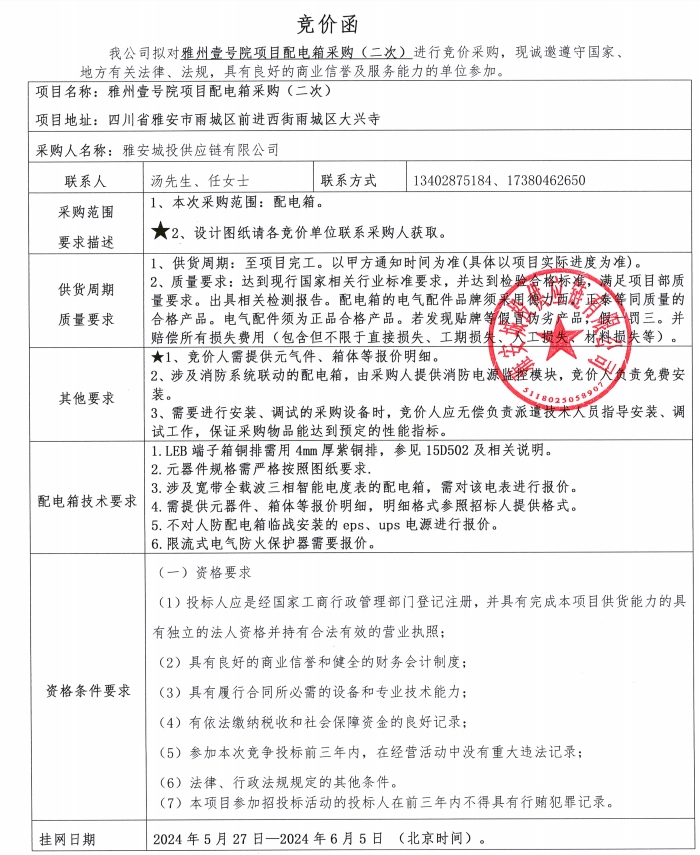 附件1:競價(jià)函--雅州壹號院項(xiàng)目配電箱采購(二次)