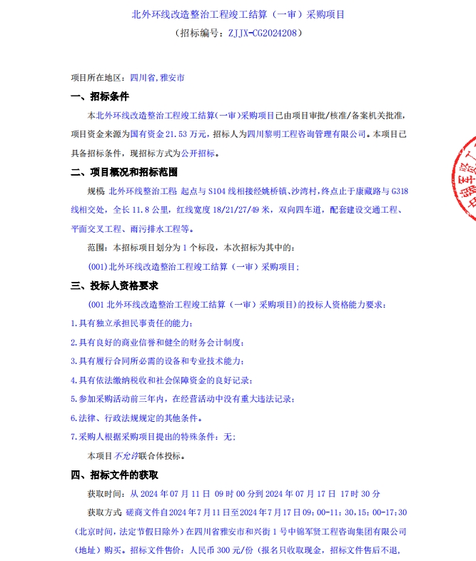 北外環(huán)線(xiàn)改造整治工程竣工結(jié)算(一審)采購(gòu)項(xiàng)目公告