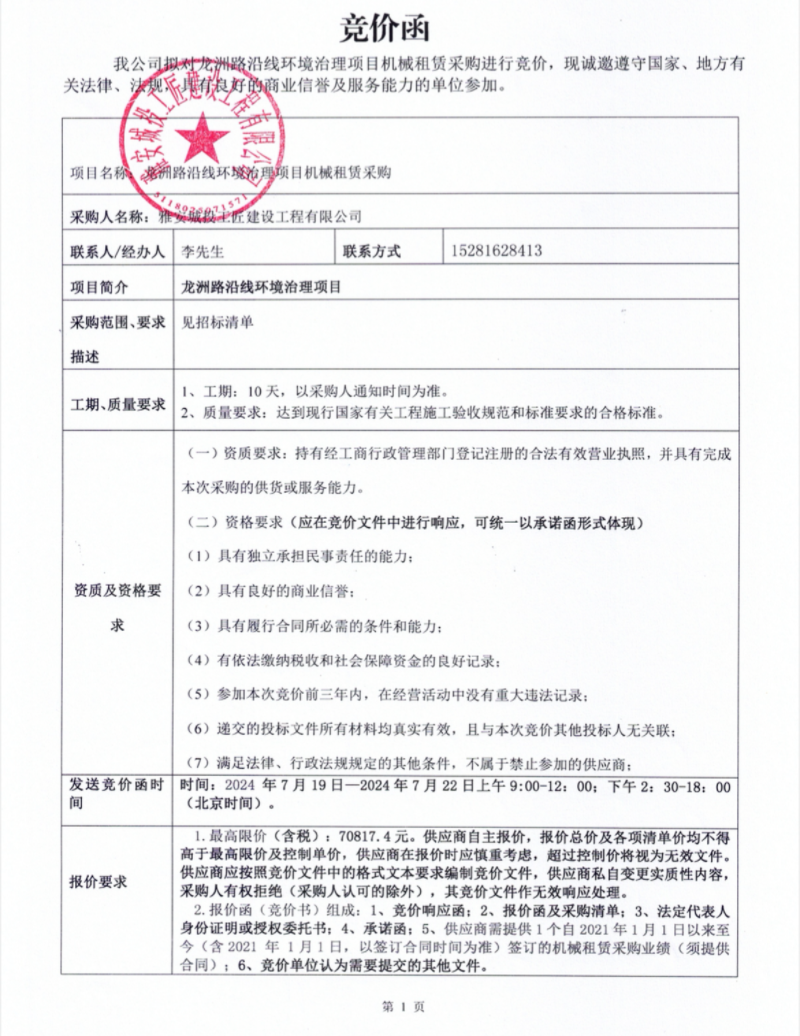 龍洲路沿線環(huán)境治理項(xiàng)目機(jī)械租賃采購(gòu)競(jìng)價(jià)公告