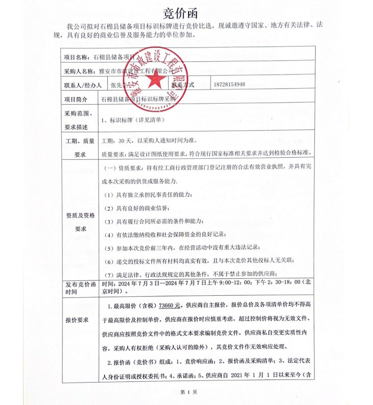 石棉縣儲備項目標識標牌競價公告