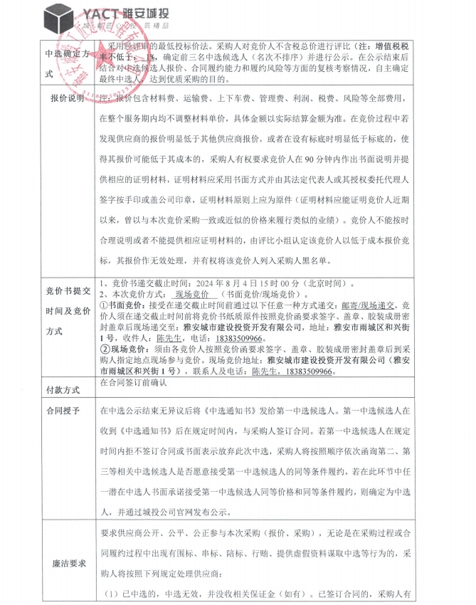 雅安市大興生態(tài)旅游建設(shè)項目架管及配件租賃競價公告