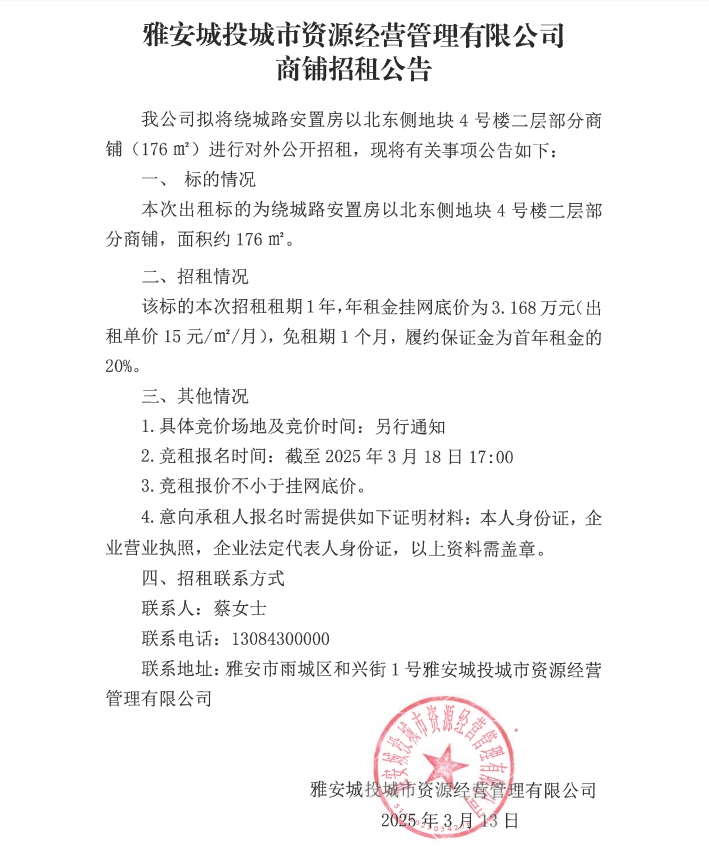 繞城路安置房以北東側(cè)地塊4號樓二層部分商鋪招租公告