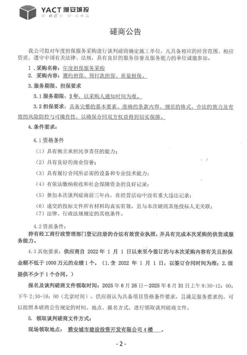 年度擔保服務采購磋商公告