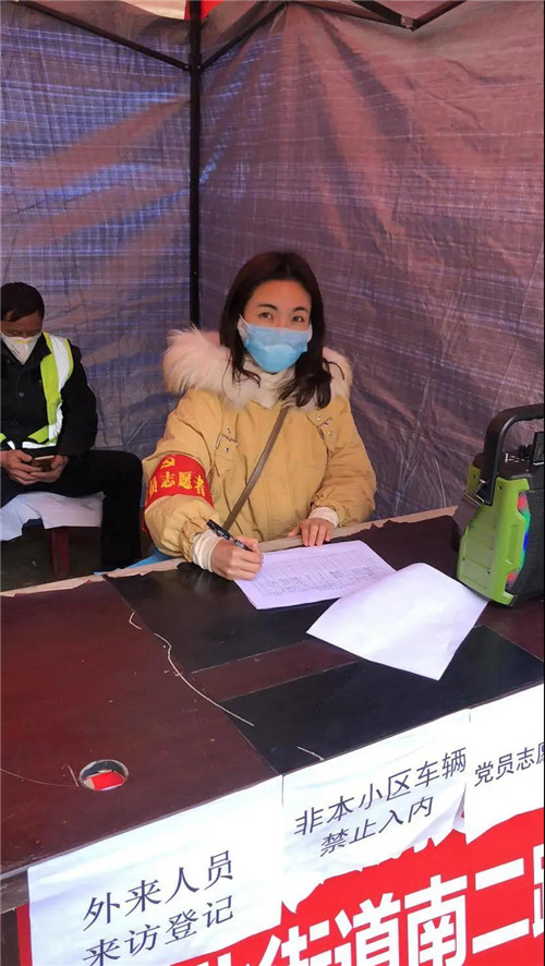 城投·市政公司彭莉娟在河北街道南二路社區(qū)新冠肺炎防控點值守